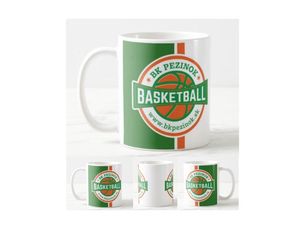 Biely keramický hrnček s logom BK Pezinok. Ideálny na vychutnanie obľúbeného nápoja a zároveň prejavenie podpory svojmu basketbalovému klubu.