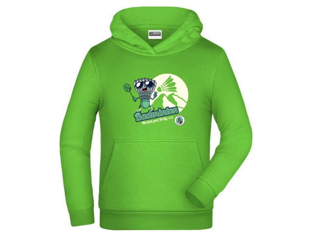 Stylová dětská mikina s kapucí a klokánkovou kapsou v zelené barvě je skvělou volbou pro malé fanoušky a hráče Badmintonu Mníšek pod Brdy. Vyrobena je z 100% bavlny, která je příjemná na dotek, dobře odvádí vlhkost a zároveň je dostatečně odolná i pro každodenní nošení do školy, na tréninky nebo jen tak ven.