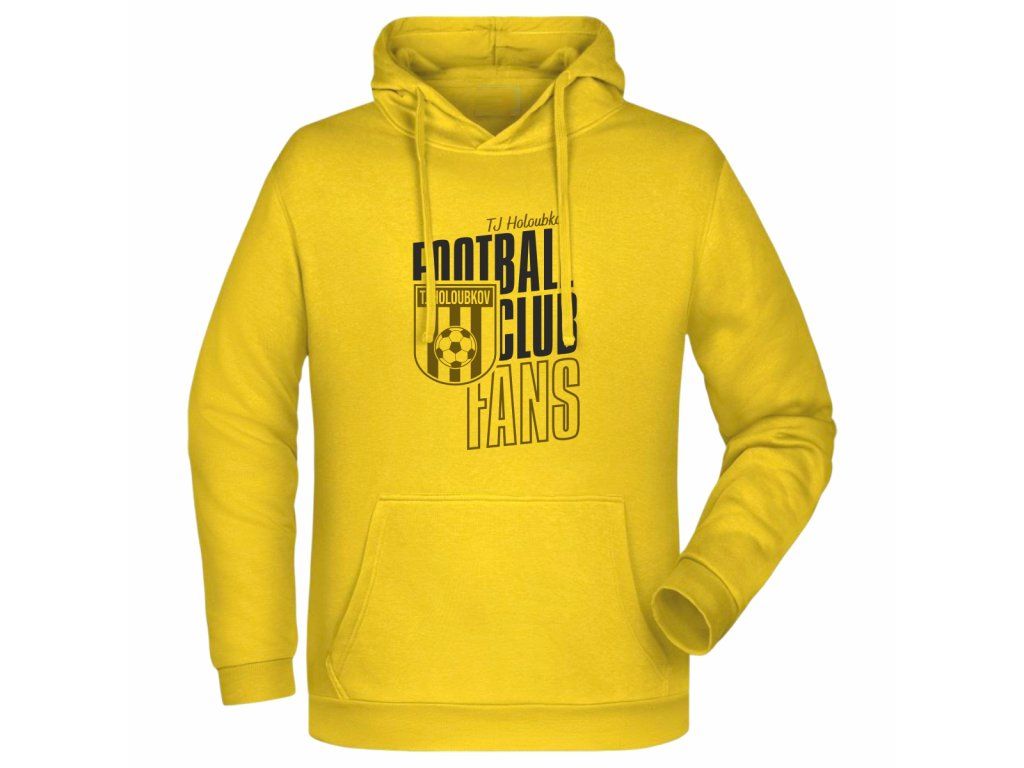 Klasická dětská žlutá mikina pro fanoušky TJ Holoubkov je ideální volbou pro podporu klubu na zápasech i pro každodenní nošení. Na přední straně se nachází design loga klubu, zatímco záda zdobí výrazný nápis „Holoubkov fans“, který jasně ukazuje týmovou příslušnost.