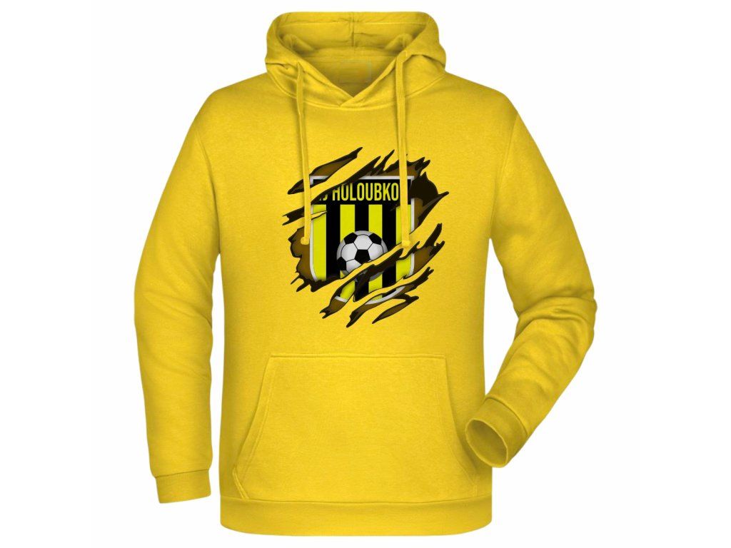 Klasická dětská žlutá mikina pro fanoušky TJ Holoubkov je ideální volbou pro podporu klubu na zápasech i pro každodenní nošení. Na přední straně se nachází design loga klubu, zatímco záda zdobí výrazný nápis „Holoubkov fans“, který jasně ukazuje týmovou příslušnost.