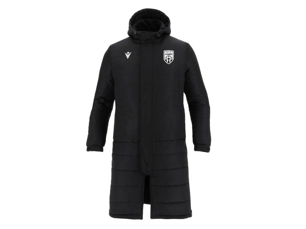 Dlouhá zimní bunda Turvey je ideální volbou pro chladné a nepříznivé počasí. Elegantní černé provedení doplňuje logo MFK Dobříš na srdci, díky čemuž je bunda perfektní pro trenéry, hráče i realizační tým.
