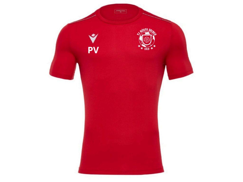 Dres se vyznačuje klasickým střihem, který neomezuje pohyb a zajišťuje volnost při každé akci. Na srdci je umístěno logo TJ Město Zbiroh, pod logem Macron pak personalizované iniciály nebo číslo hráče – detail, který podtrhne týmovou identitu a individualitu každého hráče. Červená barva reprezentuje klubovou hrdost a dodává dresu dynamický vzhled.