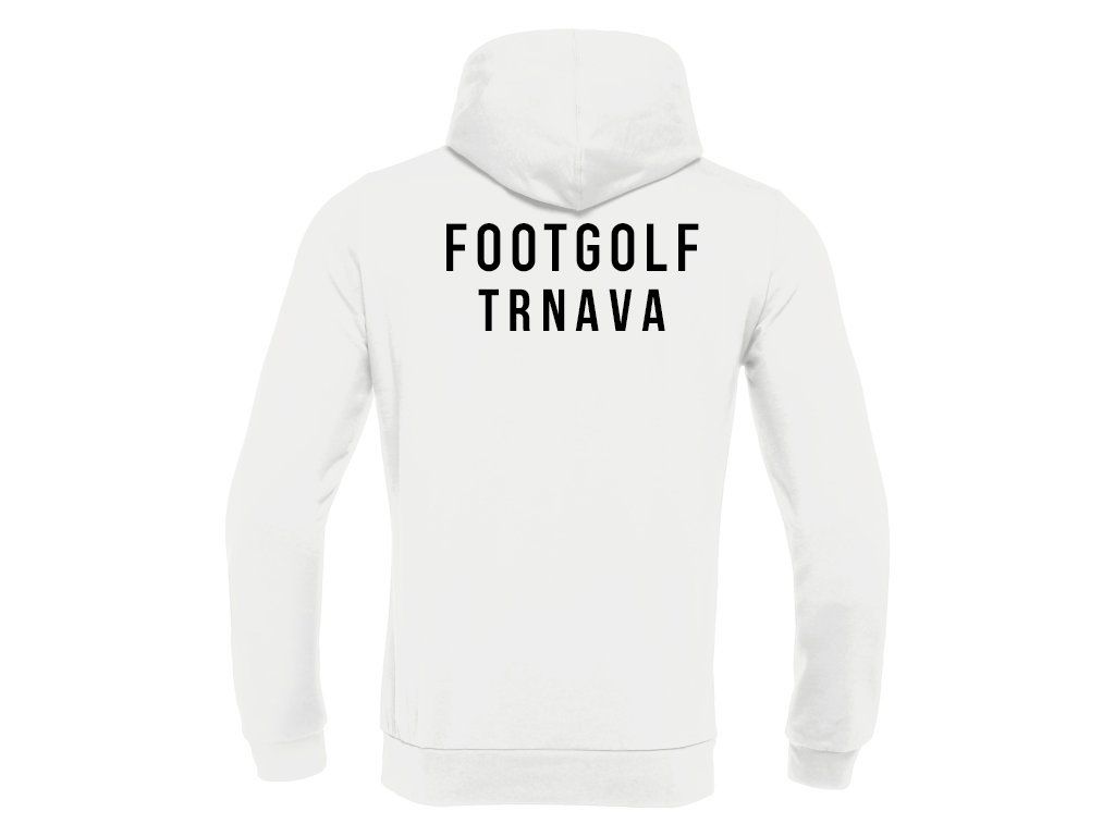 Štýlová biela mikina v klubovom štýle s logom FootGolfového Klubu Trnava na srdci a nápisom "FootGolf Trnava" na chrbte je ideálnou voľbou pre každého fanúšika. Kombinuje pohodlie, ľahký materiál a elegantný dizajn, ktorý vás dokonale reprezentuje vo voľnom čase aj na športových podujatiach.