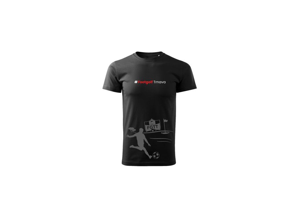 Čierne tričko BASIC s nápisom "Footgolf Trnava" a siluetou hráča footgolfu prináša spojenie funkčnosti a športového štýlu. Vyrobené zo 100 % bavlny, tričko je mäkké, priedušné a odolné. Tubulárny strih bez bočných švov a spevňujúca páska na ramenách zabezpečujú dlhú životnosť a komfort počas nosenia. Dizajn s nápisom a siluetou vytvára štýlový vzhľad, ktorý ocenia všetci priaznivci footgolfu.