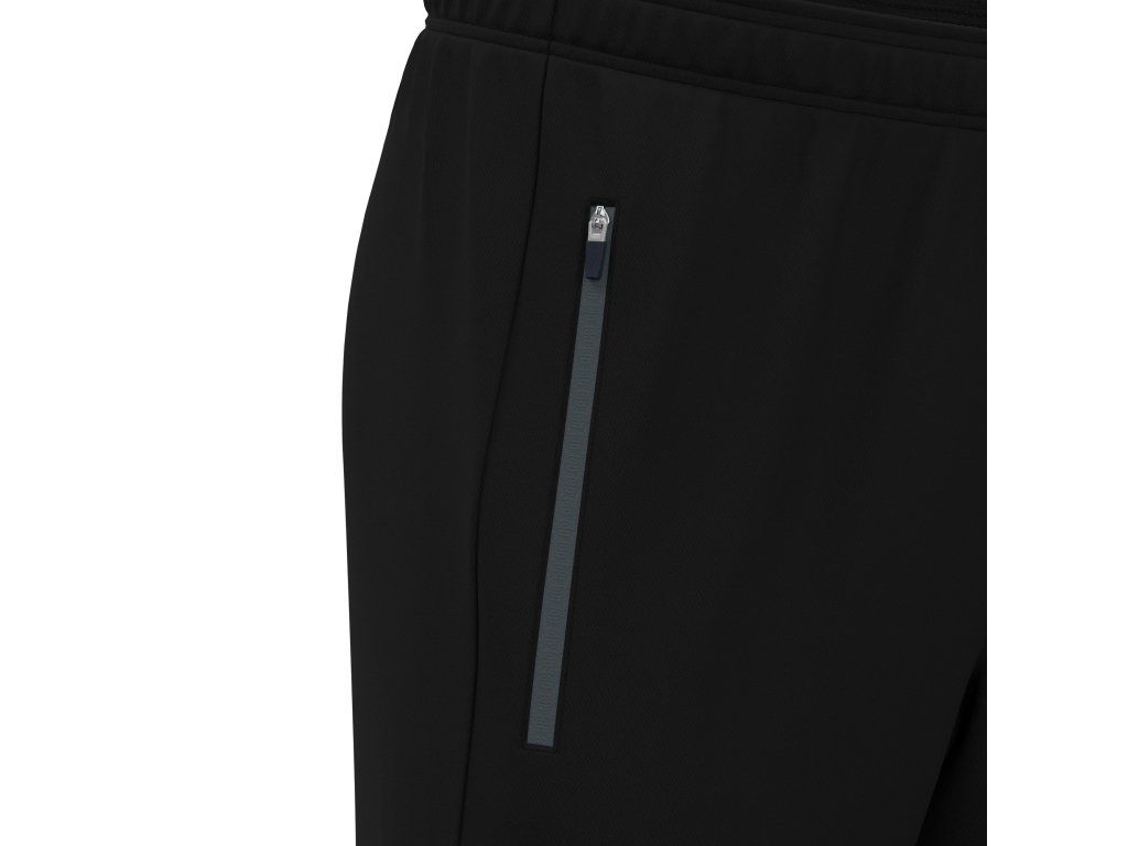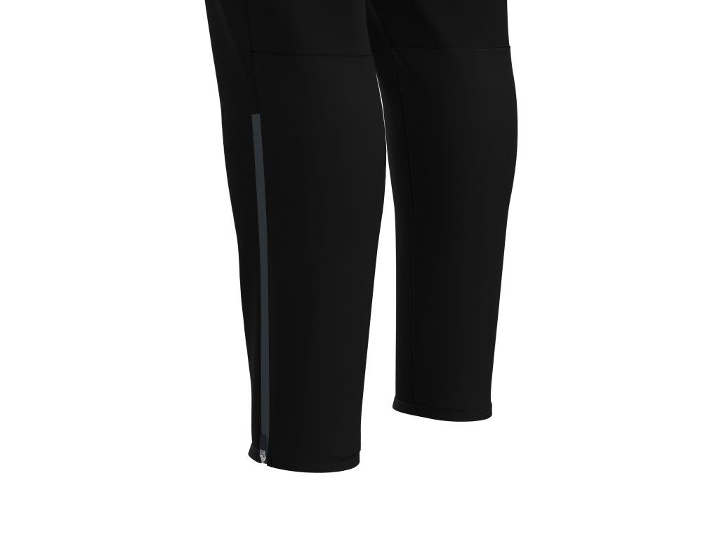 V pase se nachází plochá stahovací šňůrka, která zajišťuje stabilní a pohodlné utažení. Dvě boční kapsy na zip umožňují bezpečné uložení drobností během tréninku. Na spodní části nohavic je reverzní zip s auto-lock jezdcem, díky kterému se kalhoty snadno oblékají i přes kopačky.