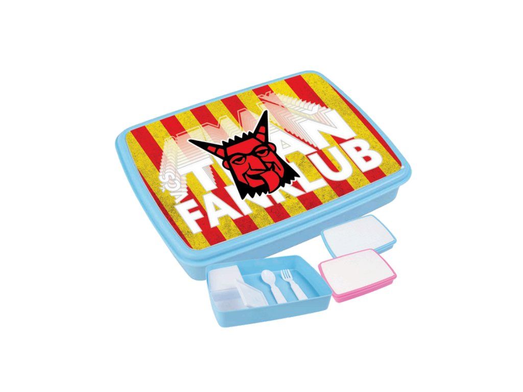 Červená krabička na svačinu s klubovým logem na víčku je praktickým doplňkem pro každého hráče, fanouška nebo studenta. Vyrobena z odolného materiálu, který chrání obsah a zároveň je lehký a snadno přenosný.