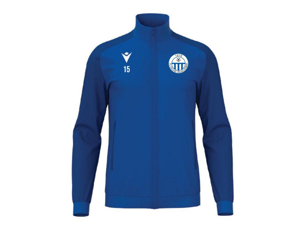 Vycházková mikina Macron Anubis v královksé modré barvě je perfektní pro pohodlí mimo hřiště. Je vyrobena ze 100% polyesteru a kombinuje technologii PolyDry pro pevnost a odolnost s PolyFleece pro příjemný tepelný komfort. Má celopropínací zip, boční kapsy na zip a elegantní sportovní střih. Logo klubu FC Čechie Velká Dobrá je umístěno na srdci, doplněné o iniciály nebo číslo hráče pod logem Macron.