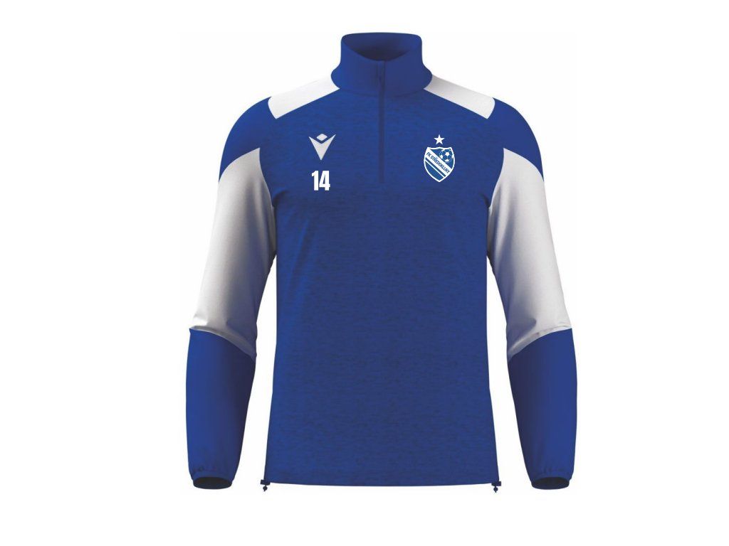 Tréninková mikina Macron Cuzco v královské modré barvě je ideální pro chladnější dny na hřišti i mimo něj. 💪 Díky technologii Poly Dry zajišťuje výbornou tepelnou izolaci, prodyšnost a komfort při nošení. Elastické manžety a spodní lem poskytují perfektní přizpůsobení, zatímco česaná vnitřní vrstva udržuje příjemné teplo. Na srdci je umístěno logo klubu FK Středokluky, pod logem Macron lze přidat iniciály nebo číslo hráče pro individuální vzhled.