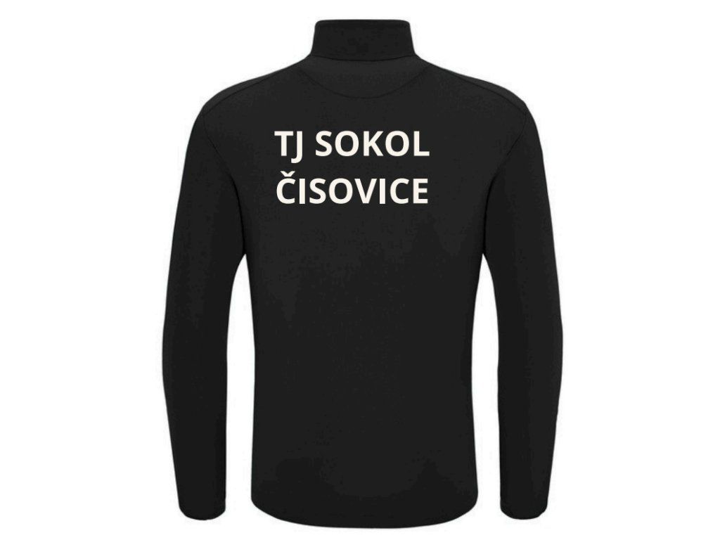 Barva: černá s logem TJ Sokol Čisovice na srdci a personalizací (číslo/iniciály) pod logem Macron.