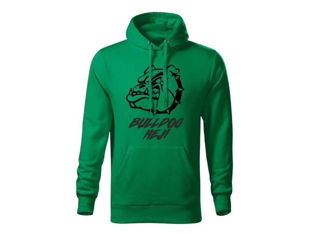 • 📢 Potlač: silueta bulldoga a nápis "Bulldog hej!" vpredu