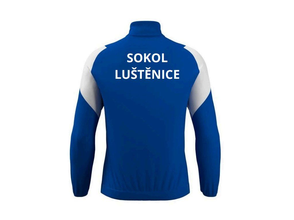 Barva: královská modrá s logem Sokol Luštěnice na srdci a možností personalizace (iniciály/číslo) pod logem Macron.