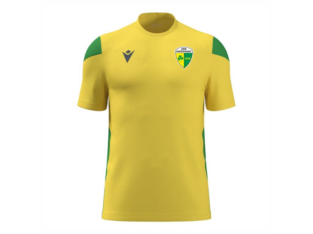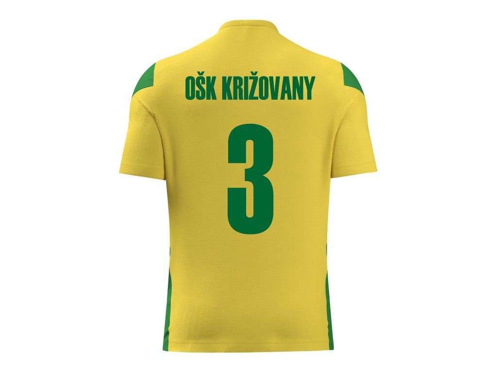 V žlto-zelenej klubovej kombinácii s oficiálnou potlačou pre hráčov OŠK Križovany.