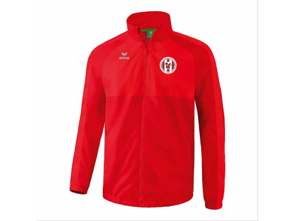 Vždy pripravený reprezentovať svoj tím, aj keď prší! Detská šuštiaková bunda SIX WINGS v červenej farbe s klubovou potlačou je ideálnou ochranou proti nepriaznivému počasiu. Štýlový dizajn a praktické detaily udržia mladých športovcov v pohodlí a suchu počas tréningov, zápasov aj vo voľnom čase.