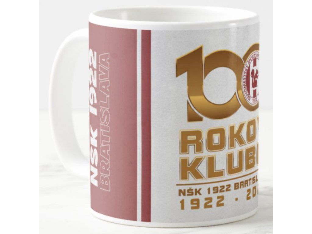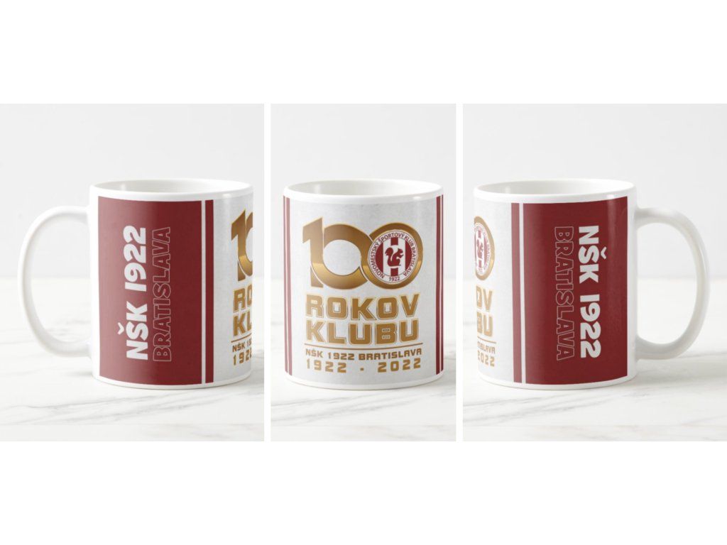 - Slávnostná potlač k 100. výročiu s logom a tematickými prvkami NŠK 1922 Bratislava zdobí povrch hrnčeka.