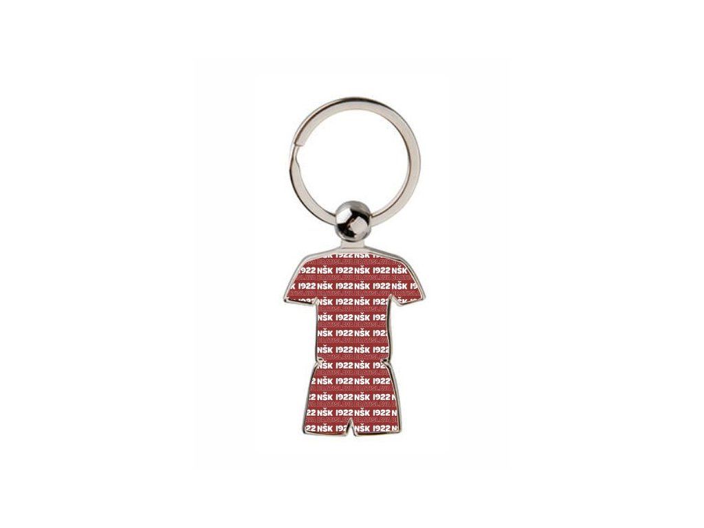 Reprezentuj svoj tím aj v každodennom živote! Kľúčenka v tvare dresu s opakujúcim sa názvom NŠK 1922 Bratislava na červenom pozadí je praktickým a štýlovým doplnkom, ktorý poteší každého fanúšika.