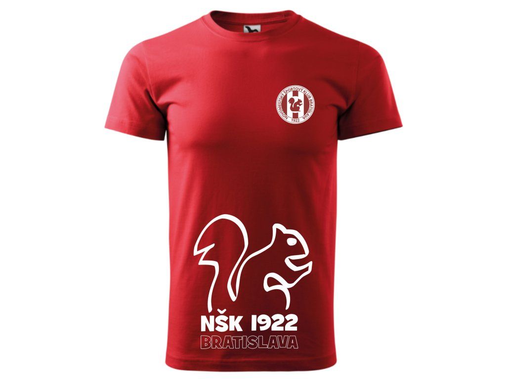 Ukáž klubovú hrdosť vo veľkom štýle! Tričko BASIC v červenej farbe s dominantnou siluetou veveričky na prednej strane a klubovým erbom NŠK 1922 Bratislava na srdci je dokonalým spojením originality a tradície. Ideálna voľba pre každého fanúšika, ktorý chce vyniknúť a hrdo reprezentovať svoj tím.