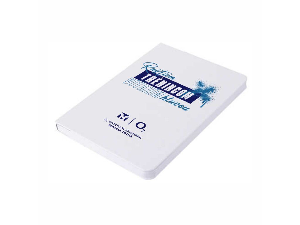 Táto verzia poznámkového bloku O2 Športovej akadémie Mateja Tótha upúta modernou typografiou a výrazným grafickým spracovaním. Vizuál kombinuje modré odtiene s dynamickým sprejovým efektom, ktorý symbolizuje energiu, kreativitu a progres.