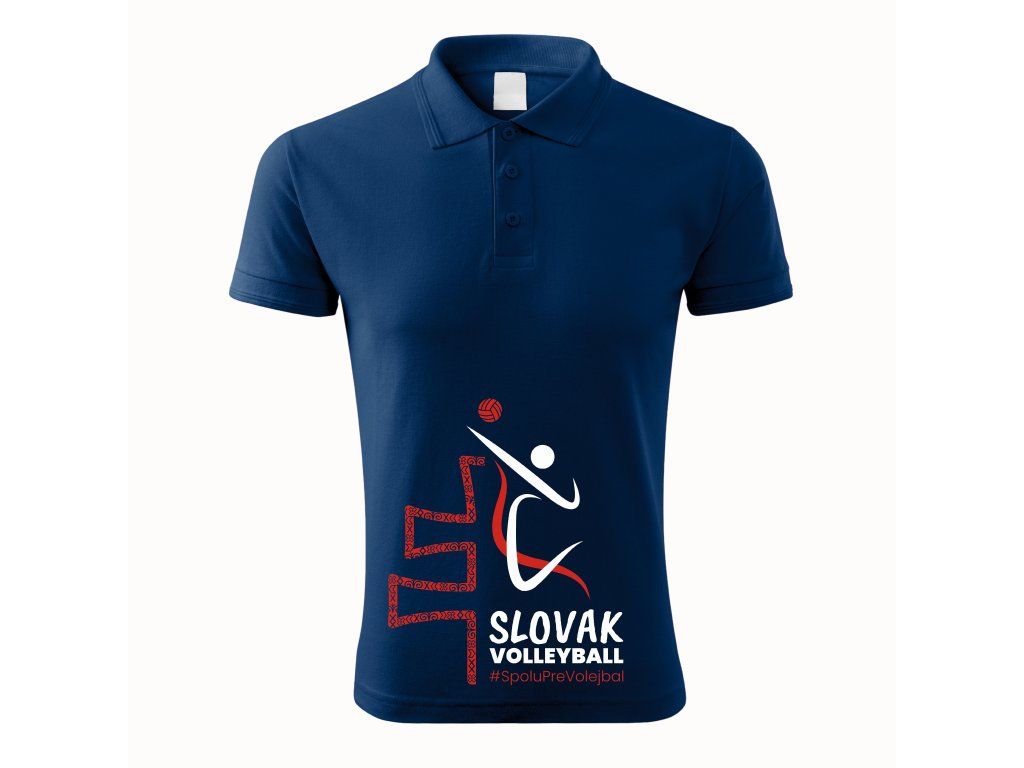 Táto pánska polokošeľa v tmavomodrej farbe ponúka ideálne spojenie športového ducha a reprezentatívneho štýlu. S grafikou volejbalistu v slovenskom motíve, nápisom Slovak Volleyball a hashtagom #spoluprevolejbal sa hodí na zápasy, výjazdy, ale aj do mesta.