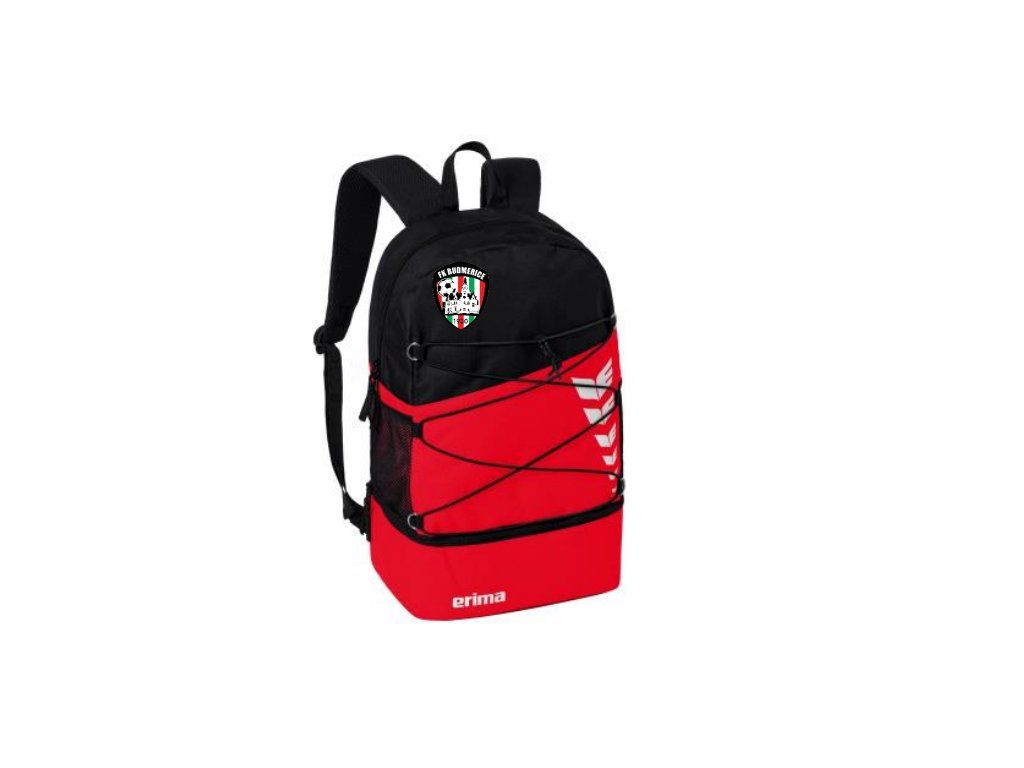 Tento ruksak so spodným oddelením ERIMA SIX WINGS s erbom FK Budmerice je dokonalým doplnkom pre športovcov aj fanúšikov. Vyniká priestranným dizajnom, množstvom praktických funkcií a pohodlným nosením, čím splní všetky vaše požiadavky na športové vybavenie alebo každodenné použitie.
