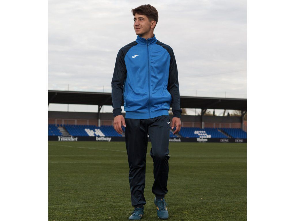 Tepláková souprava TJ Ruzyně je ideální volbou pro tréninky i zápasy, která vám poskytne pohodlí a volnost pohybu na hřišti. Bunda s otevřeným zipem a kapsami má raglánové rukávy, žebrované manžety, límec a spodní lem pro optimální přizpůsobení. Kalhoty s elastickou šňůrkou v pase a žebrovanými manžetami zajistí maximální komfort při každém pohybu. Souprava je doplněna vyšívaným logem JOMA + na strdci tisknuté logo TJ Ruzyné a nápisem TJ RUZYNE FOTBAL na zádech, což vám dodá hrdost při nošení.
