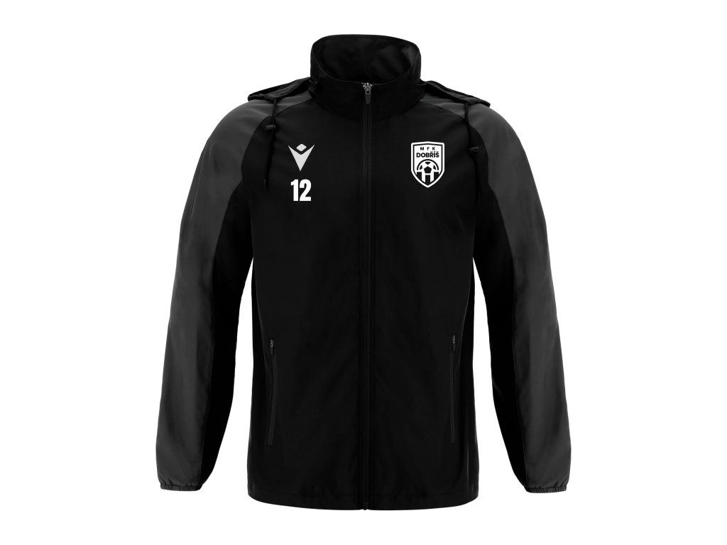 Přední zip na celé délce je vybaven auto-lock sliderem, kapsy na bocích mají zapínání na zip a kapuce je prakticky ukrytá v límci. Elastické manžety a stahovací šňůrka v dolním lemu zajišťují perfektní přilnutí a ochranu proti větru a chladu. Logo MFK Dobříš na srdci doplňuje číslo hráče pod logem pro individuální klubovou identitu. Tone-on-tone vsadky na rukávech dodávají bundě moderní sportovní vzhled.