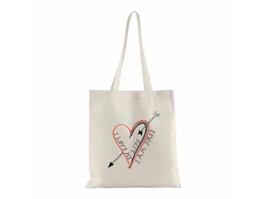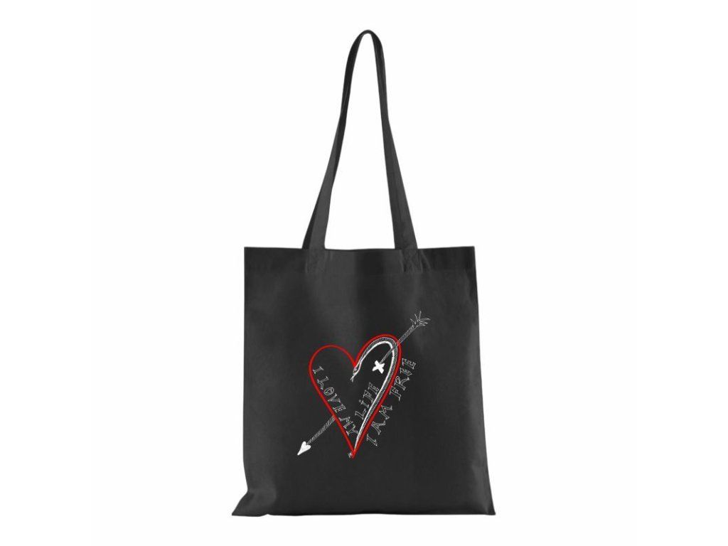 Taška je zdobena designovým srdcem s nápisy "LOVE MY LIFE" , které dodávají výrobku unikátní styl a osobitost.