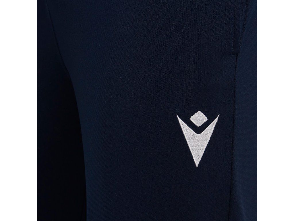 Plochá stahovací šňůrka v pase zajišťuje pevné, ale komfortní uchycení bez omezení pohybu. Praktické boční kapsy poskytují dostatek prostoru pro drobnosti, zatímco elastické zakončení nohavic pomáhá udržet tepláky na místě při jakékoli aktivitě. Vyšívané logo Macron podtrhuje sportovní charakter kalhot a iniciály hráče na stehně dodávají individuální vzhled.