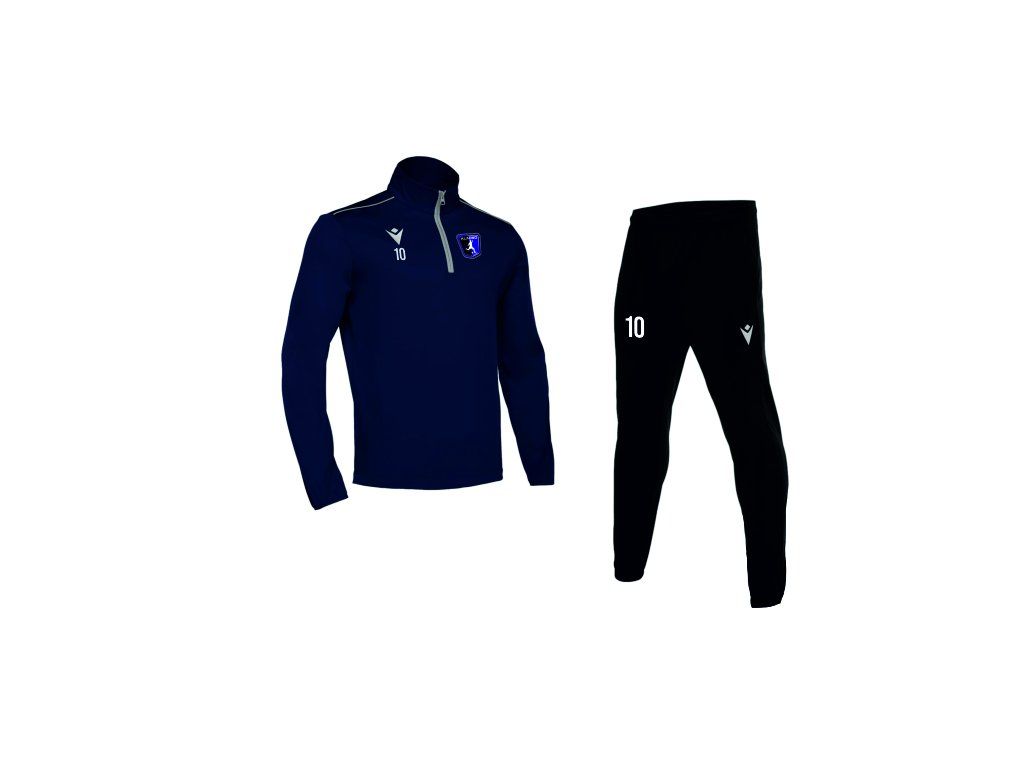 Tepláky jsou černé, vyrobené ze 100 % polyesteru, což zaručuje odolnost a flexibilitu materiálu. Mají kapsy a jsou zakončené patentem u kotníků pro snadné oblékání a pohodlné nošení. Na pravém stehně tepláků je stejně jako na mikině bílé označení hráče, číslo "10". Na teplákoch sa nachádza aj malé logo Macron, což je typickým znakem značkového oblečení.