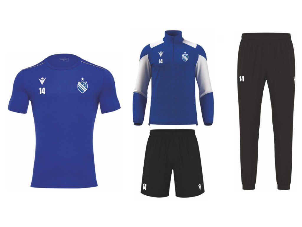 Dres i mikina jsou vyrobeny z kvalitního 100% polyesteru s funkčními technologiemi pro lehkost, prodyšnost a rychlé schnutí. Na levé straně hrudi (na srdci) se nachází logo FK Středokluky, pod logem Macron pak iniciály nebo číslo hráče.