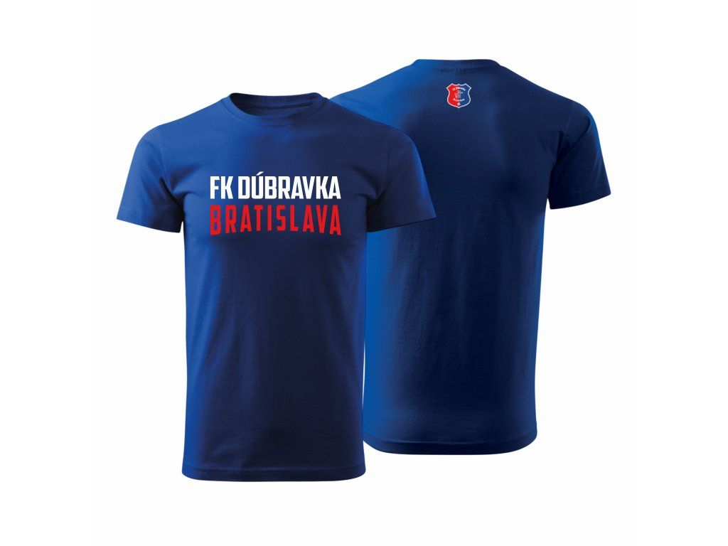 Dominantou trička je veľká potlač na hrudi – „FK DÚBRAVKA BRATISLAVA“ – ktorá v klubových farbách vyžaruje silnú tímovú identitu. Na zadnej strane pod golierom sa nachádza decentné logo FK Dúbravka, ktoré dotvára celkový dizajn. Tričko je dostupné v dvoch farbách – klasickej bielej a klubovej modrej.
