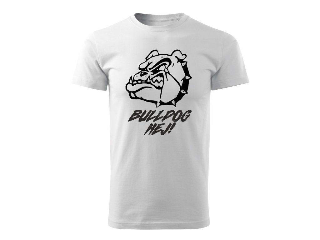 • 📢 Potlač: silueta bulldoga a nápis "Bulldog hej!" vpredu