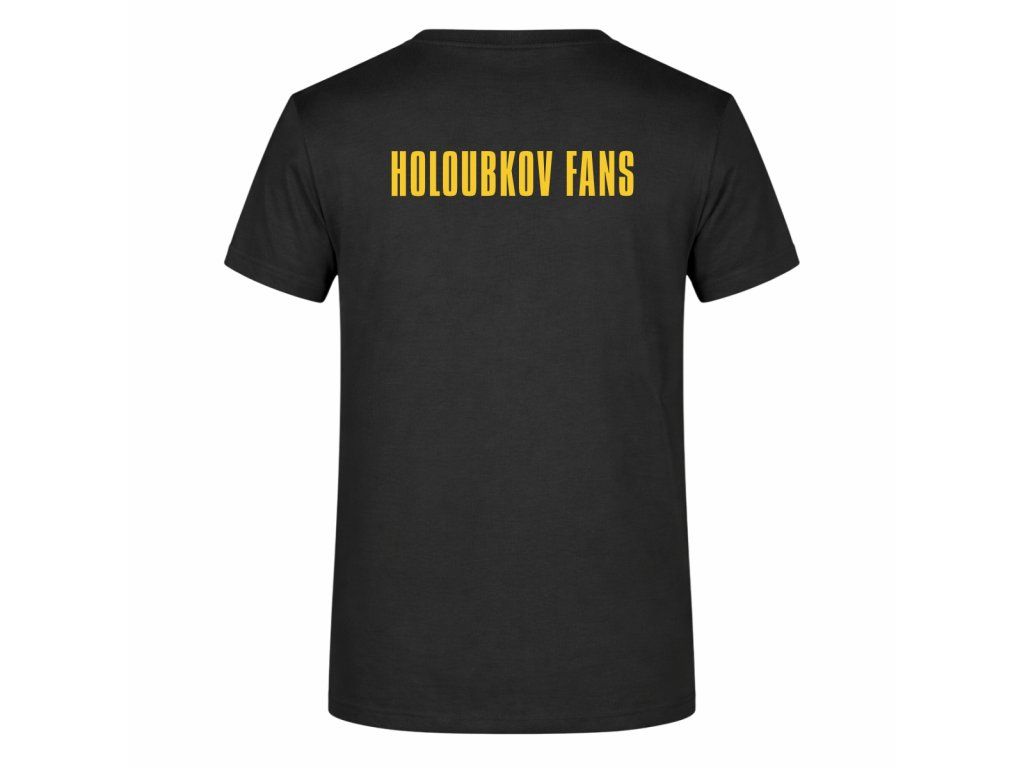 Klasické černé tričko pro fanoušky TJ Holoubkov je ideální volbou na zápasy, klubové akce i běžné nošení. Přední stranu zdobí design loga klubu, zatímco na zádech se nachází výrazný nápis „Holoubkov fans“, který jasně ukazuje podporu týmu.