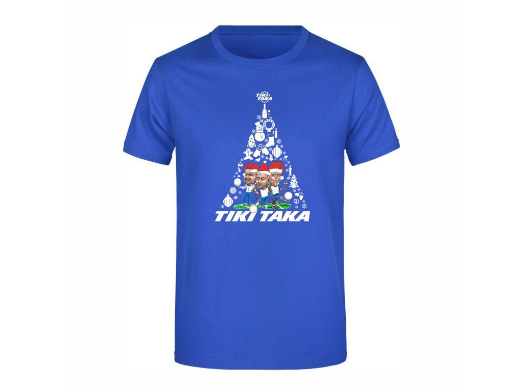 Toto sváteční tričko je poctou trojici nejvýraznějších postav pořadu TIKI TAKA – Petr Svěcený, Vladimír Šmicer a Peter Švancara. Grafika spojuje vánoční motiv ve tvaru stromku s typickým humorem této oblíbené fotbalové relace.