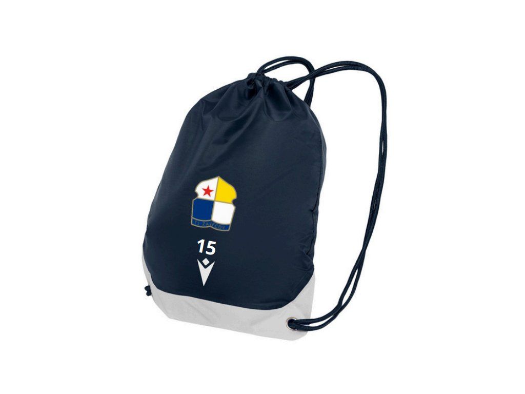 Na přední straně je umístěno logo TJ Zaječov, pod kterým najdete personalizaci – iniciály nebo číslo hráče. Díky jednoduchému designu a tmavě modré barvě je vak stylovým doplňkem pro každodenní použití.