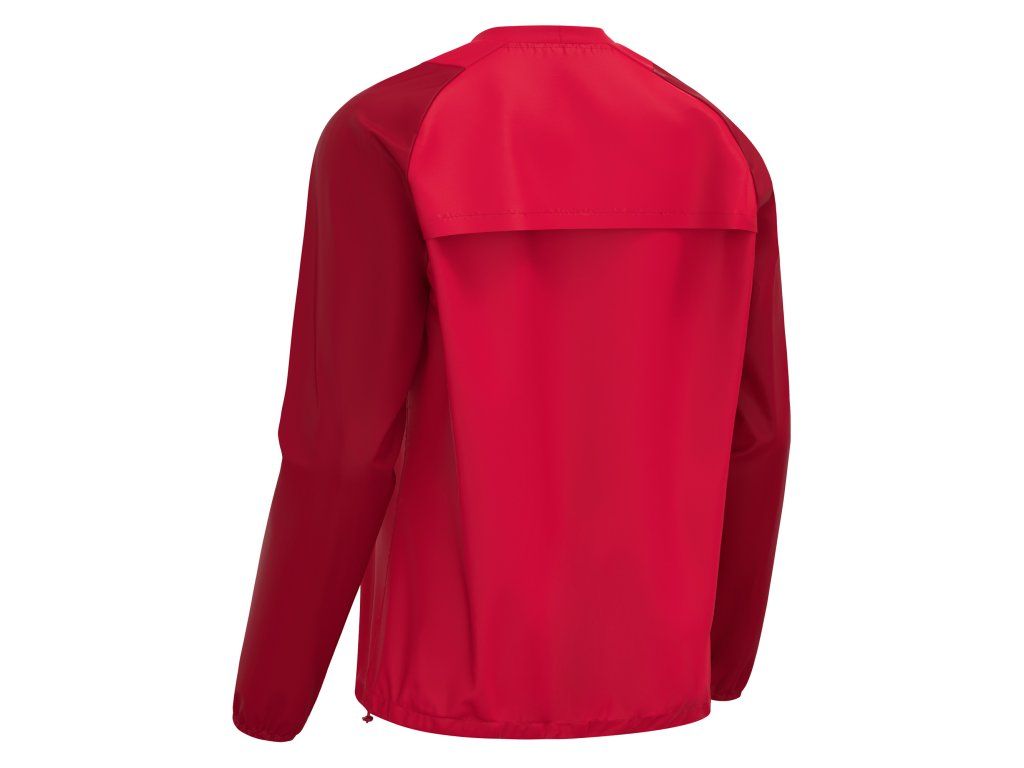 Větrovka Drizzle v červené barvě je navržena pro venkovní aktivity v proměnlivých klimatických podmínkách. Je vyrobena z funkční tkaniny Airtex, která je lehká, pevná a odolná proti větru, přičemž si zachovává vysoký komfort při nošení.