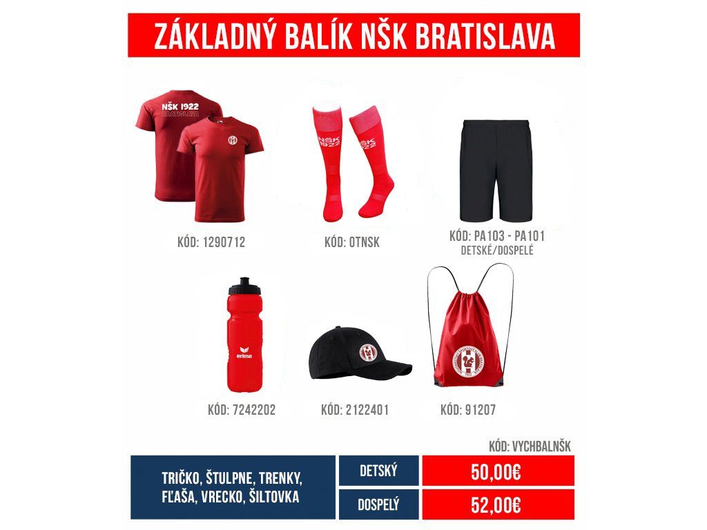 Balík obsahuje: tričko, tréningové trenky, štulpne, fľašu a vrecko s potlačou NŠK.