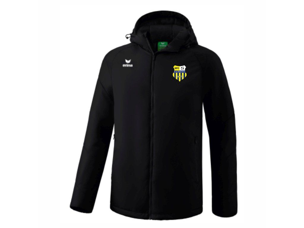Unisex tímová zimná bunda SFC Kalinkovo je ideálnym riešením pre športovcov a fanúšikov, ktorí chcú zostať v teple a suchu aj v nepriaznivom počasí. Vonkajší materiál je vode odolný s vodným stĺpcom 1 500 mm a podlepenými hlavnými švami, čo zaručuje spoľahlivú ochranu pred dažďom a snehom. Vnútorná výplň s gramážou 160 g/m² poskytuje výbornú tepelnú izoláciu. Vysoký golier a integrovaná kapucňa s tunelovým sťahovaním chránia pred vetrom, zatiaľ čo elastické manžety na rukávoch zaisťujú pohodlné nosenie. Bočné vrecká na zips a vnútorné vrecko na suchý zips umožňujú bezpečné uloženie drobností.
